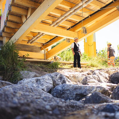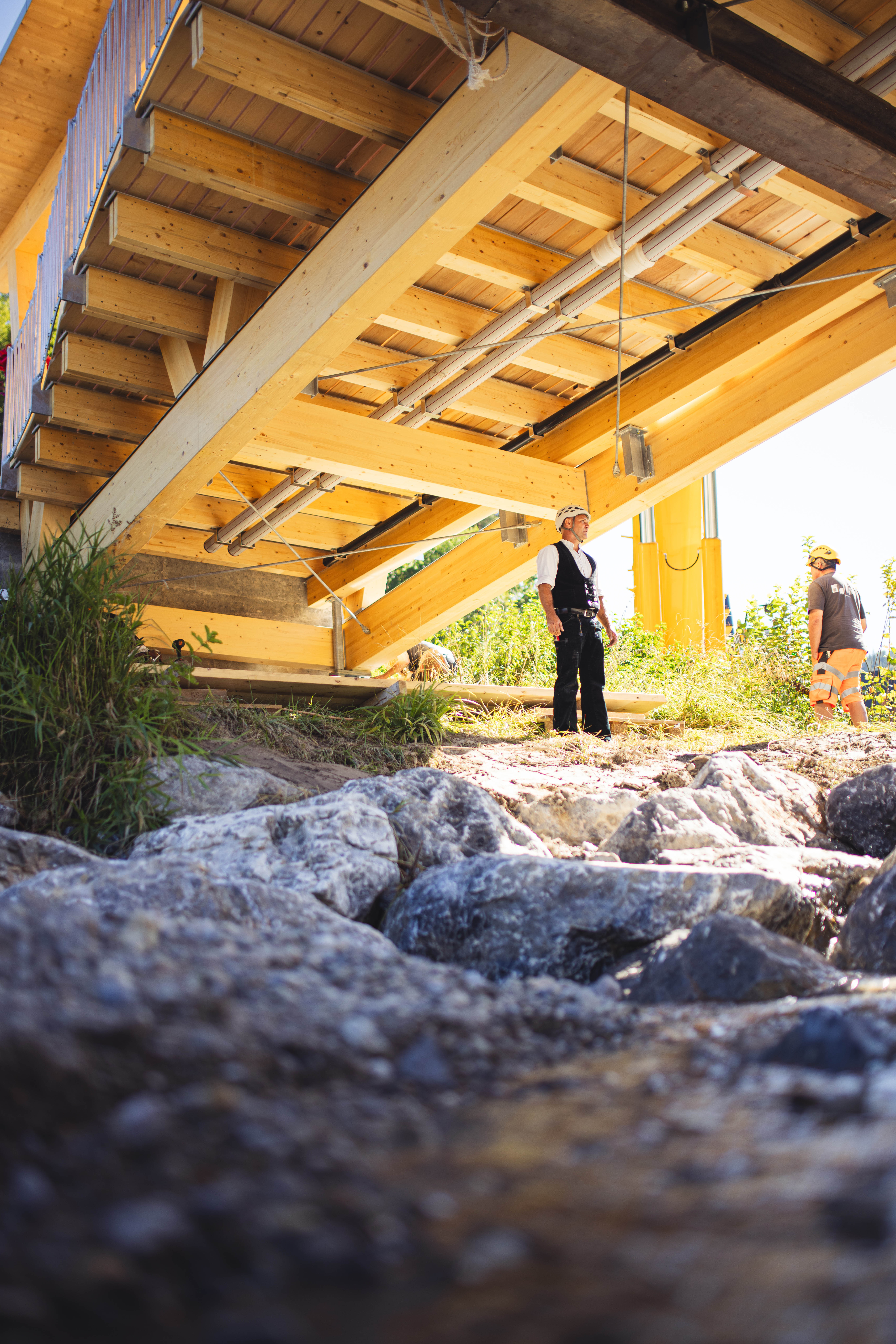 Neben den markanten Trägern – was waren für dich die spannendsten baulichen Lösungen oder vielleicht auch Herausforderungen bei diesem Projekt? Auch auf den Holzbau bezogen?