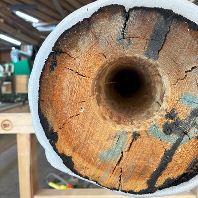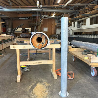 Zuerst musste der Bohrer von 100 auf 102 Millimeter Durchmesser modifiziert werden. Dies war aber nicht die grösste Herausforderung, sondern das Harz der Lärche. Zäh. Hartnäckig. Aber bezwingbar.