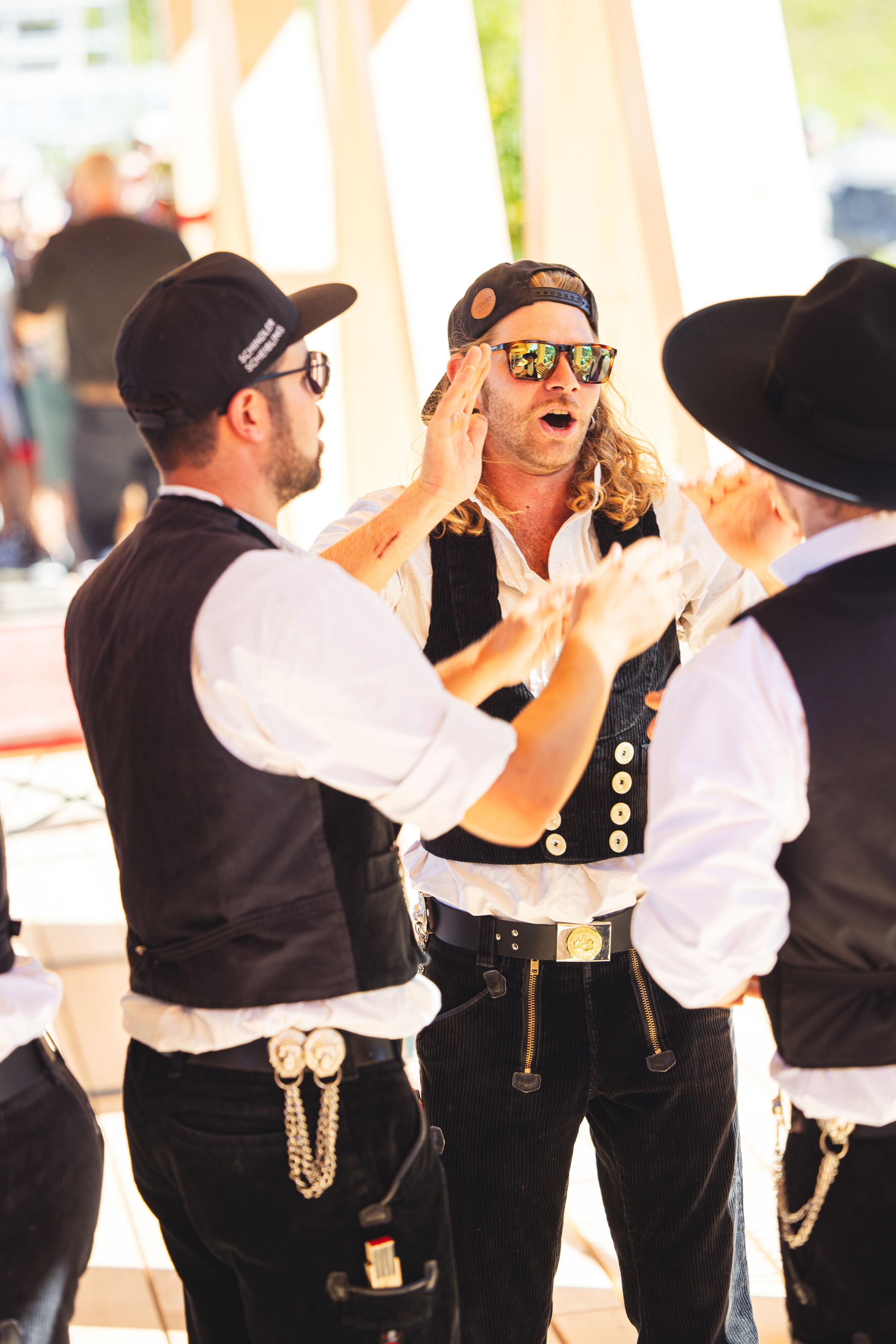 Normalerweise bohren wir Längsbohrungen durch unbehandeltes, nasses Holz – doch dieser Auftrag für das Schweizer Fernsehen stellte uns vor neuen Herausforderungen. Im Vorfeld wurden die Lärchenstämme karbonisiert, getrocknet und doppelt versiegelt. Damit der Druck der Befestigungsbänder die spröde Oberfläche nicht beschädigte, wurden die Stämme sorgfältig ummantelt.