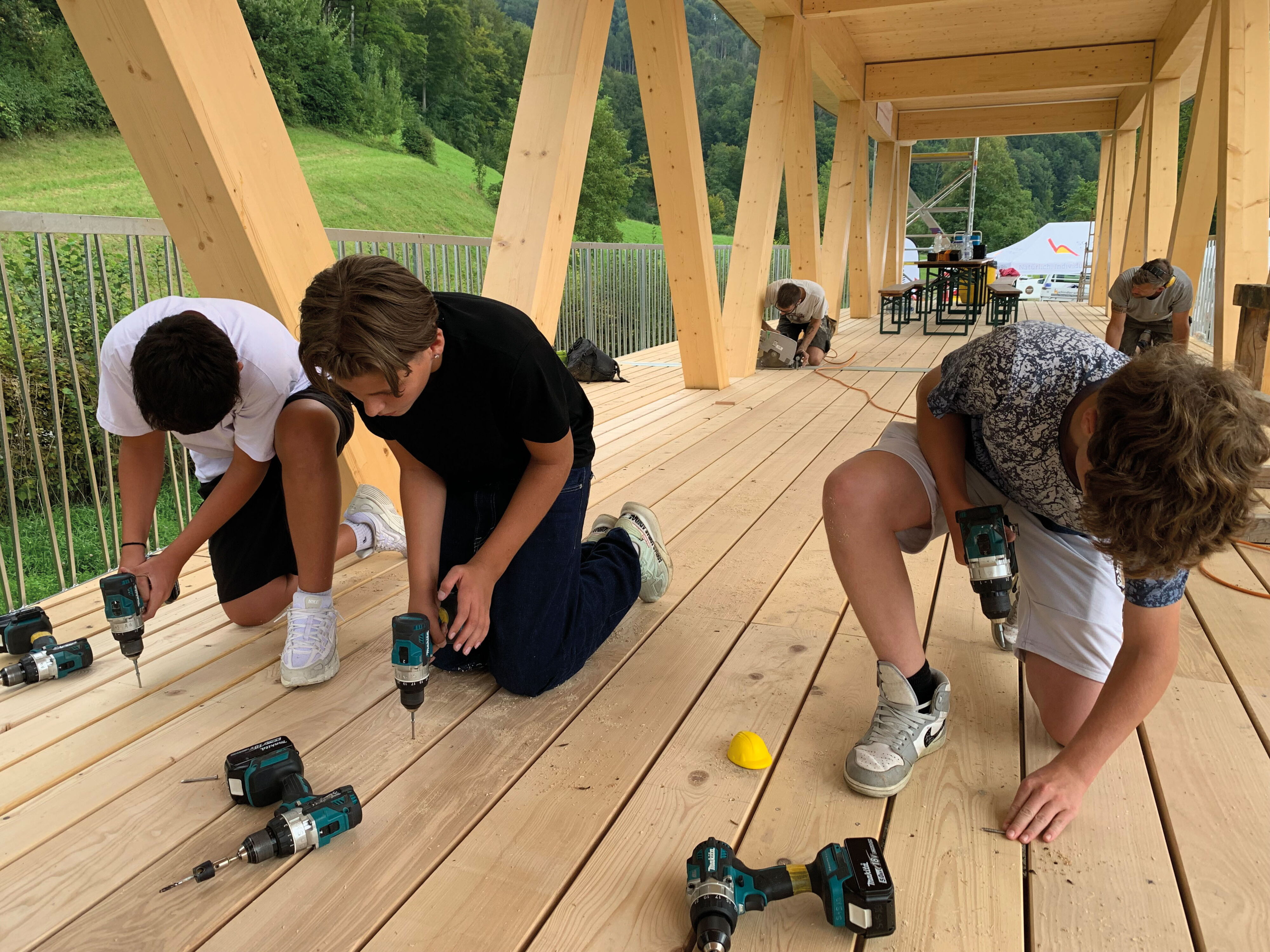 Wer hätte gedacht, dass der Zweitklässler aus Bauma souverän mit dem Akkuschrauber Bodenplanken der Brücke festschrauben oder Eisenteile zusammenschweissen kann? Wer hätte gedacht, dass das gemeinsame Bauen so viele Kindergesichter zum Strahlen bringt? Wer hätte gedacht, dass es möglich ist, Kinder in dieses Projekt zu involvieren? Ja, vielleicht zuschauen, aber auch mitmachen…? Ist das nicht zu aufwändig, zu riskant und zu kompliziert?