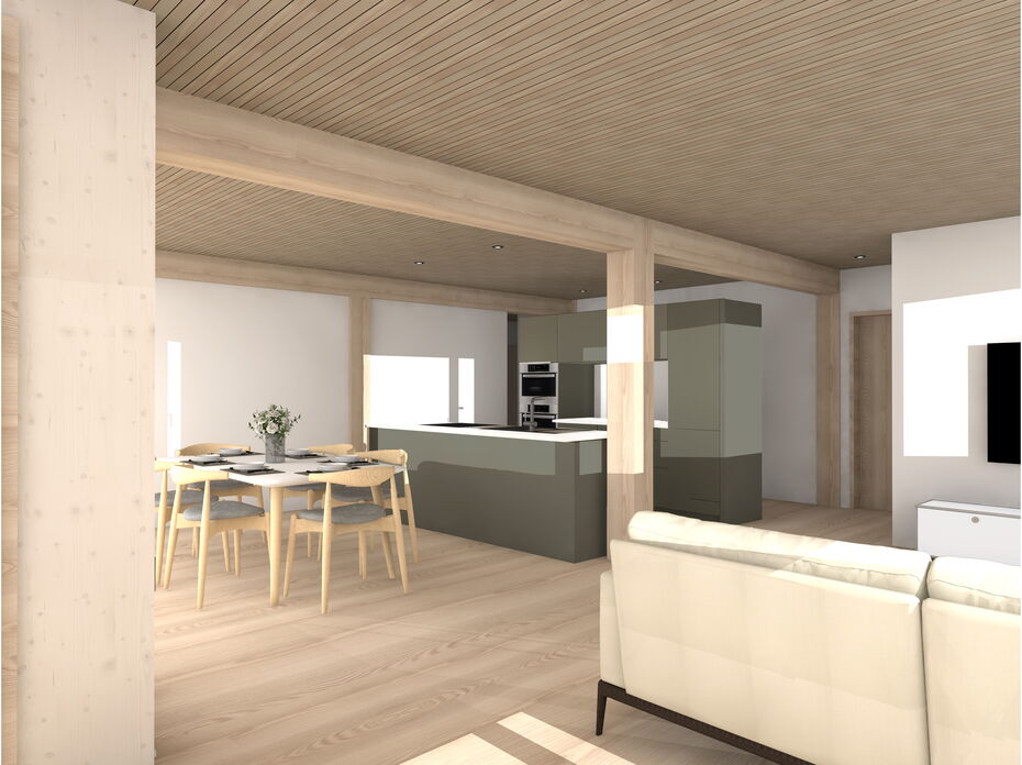 Das sorgfältig entwickelte Material- und Gestaltungskonzept erfüllt höchste qualitative und ästhetische Ansprüche und sorgt für ein gesundes, angenehmes Raumklima. Ein Ort zum Ankommen, Aufatmen und Bleiben – ein Zuhause mit Weitblick.