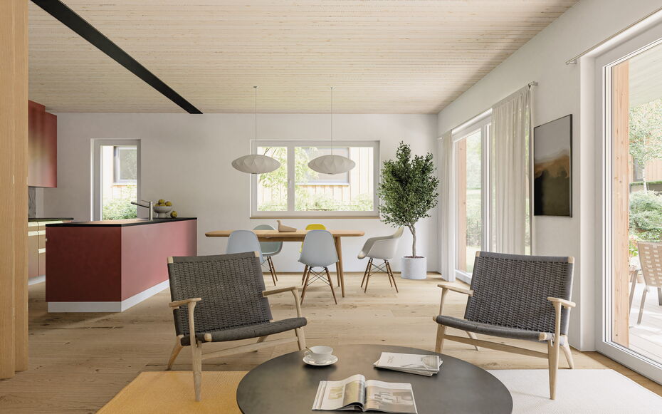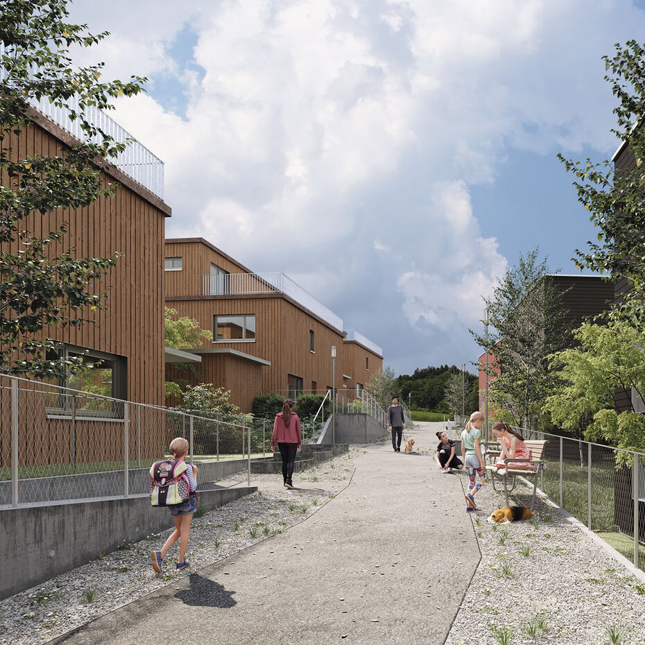 Im Weiler Ghöngg in Wila entstehen in zwei Etappen insgesamt vier Doppeleinfamilienhäuser und drei freistehende Einfamilienhäuser im Grünen.