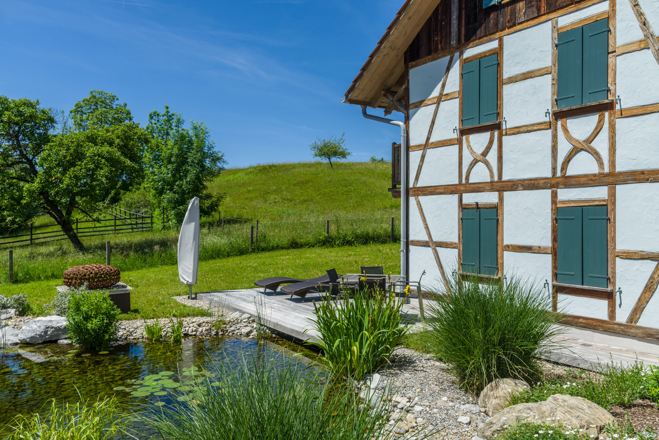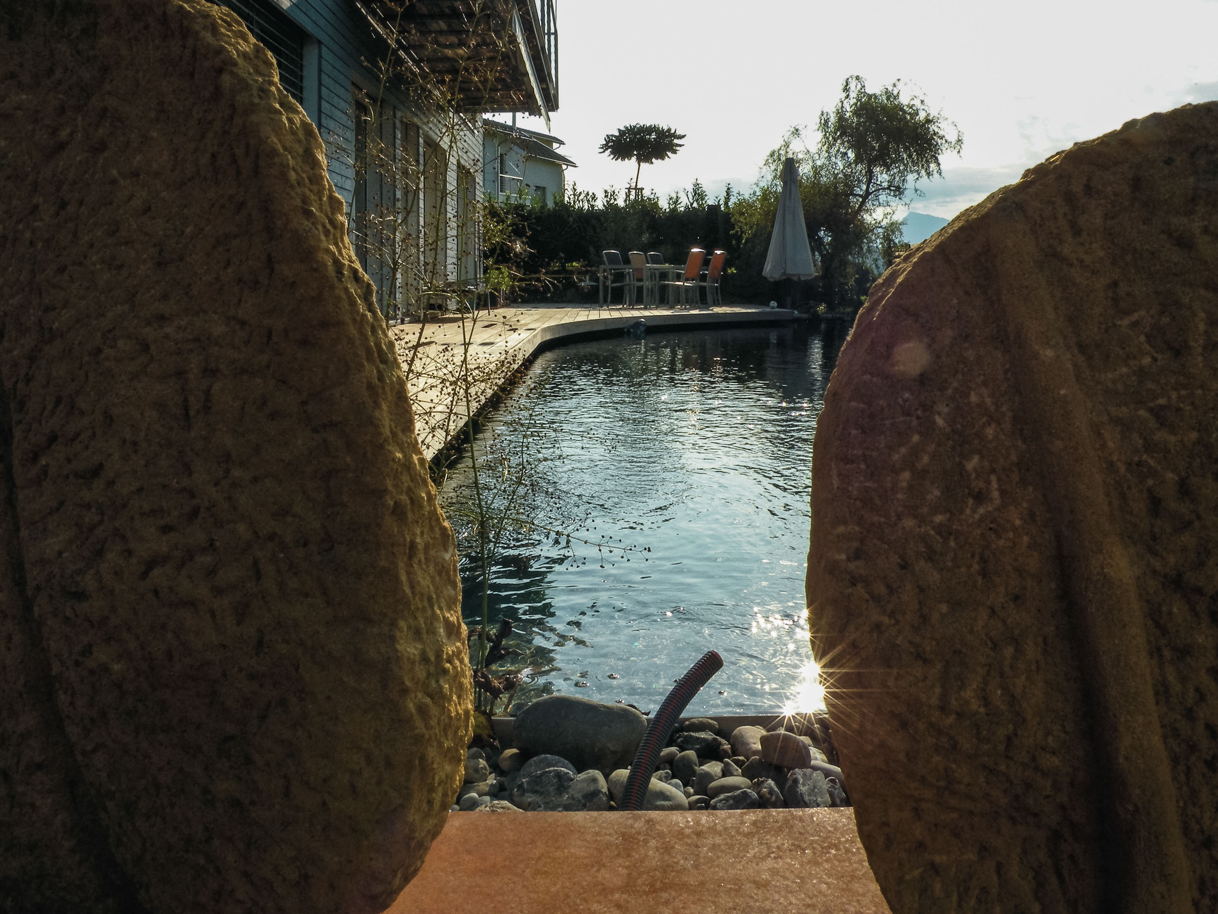 Wir bauen für Sie verschiedenste Formen und Grössen von Teichen: vom kleinen Wasserspiel bis zum grossen Schwimmteich. Fragen Sie uns, wir beraten Sie gerne!