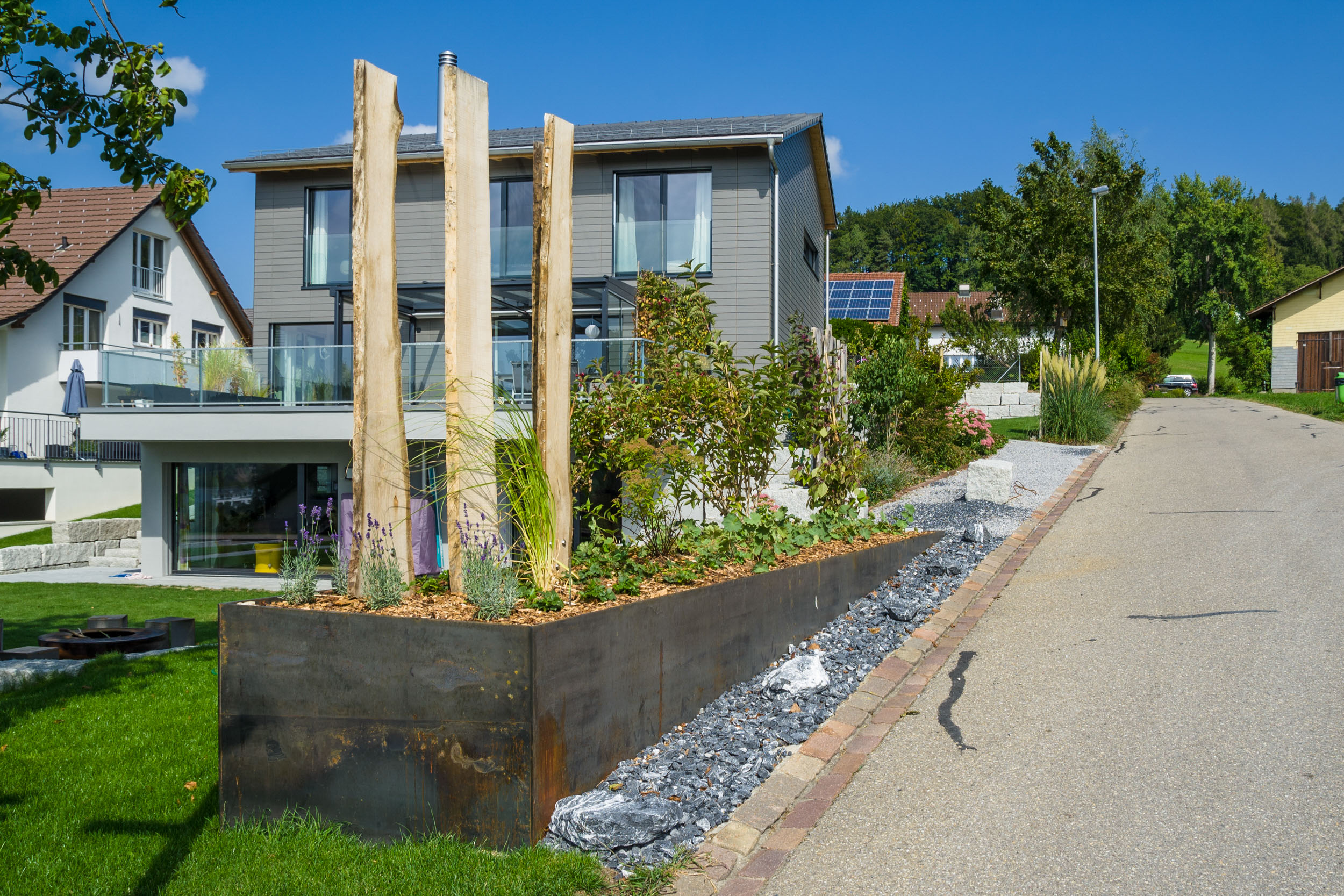 Die Schindler & Scheibling AG verfügt in der Planung und Gestaltung von Gärten über grosse Erfahrungen. Diese Erfahrungen ergaben sich ganz einfach als logische Konsequenz aus unserer Hauptaufgabe, Wohnräume individuell zu gestalten und den Bedürfnissen des Bauherrn anzupassen.