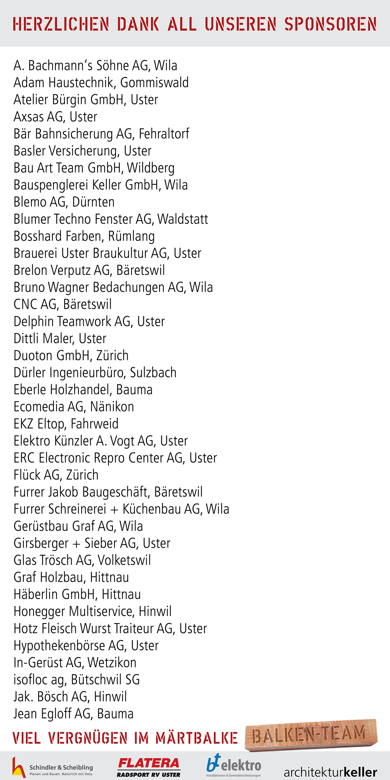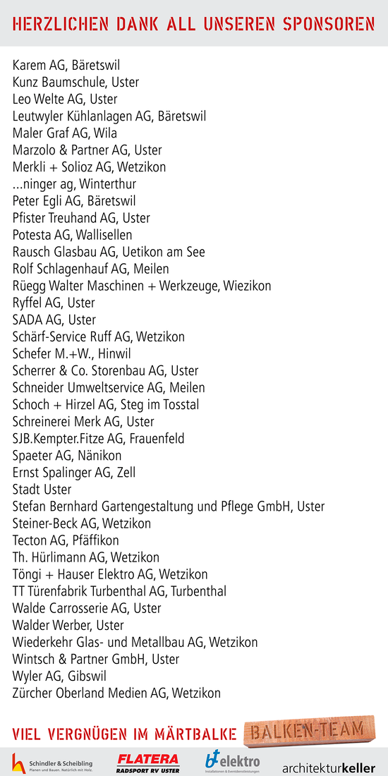 Und natürlich ein grosses Dankeschön an die Sponsoren, die den Balken jedes Jahr erst möglich machen: