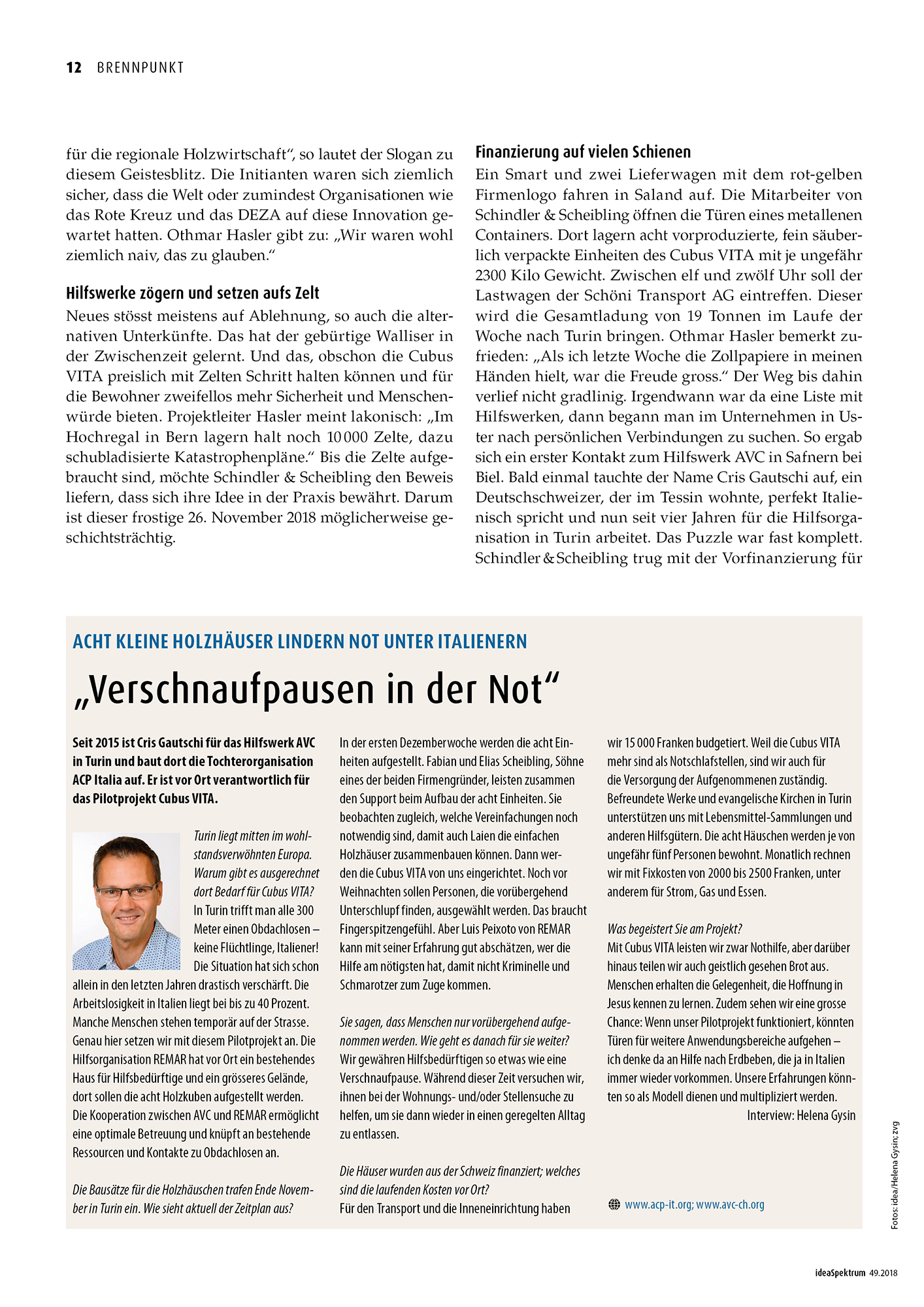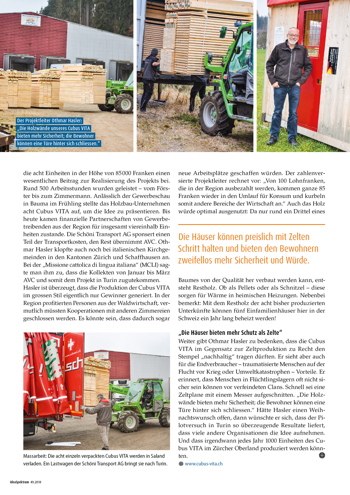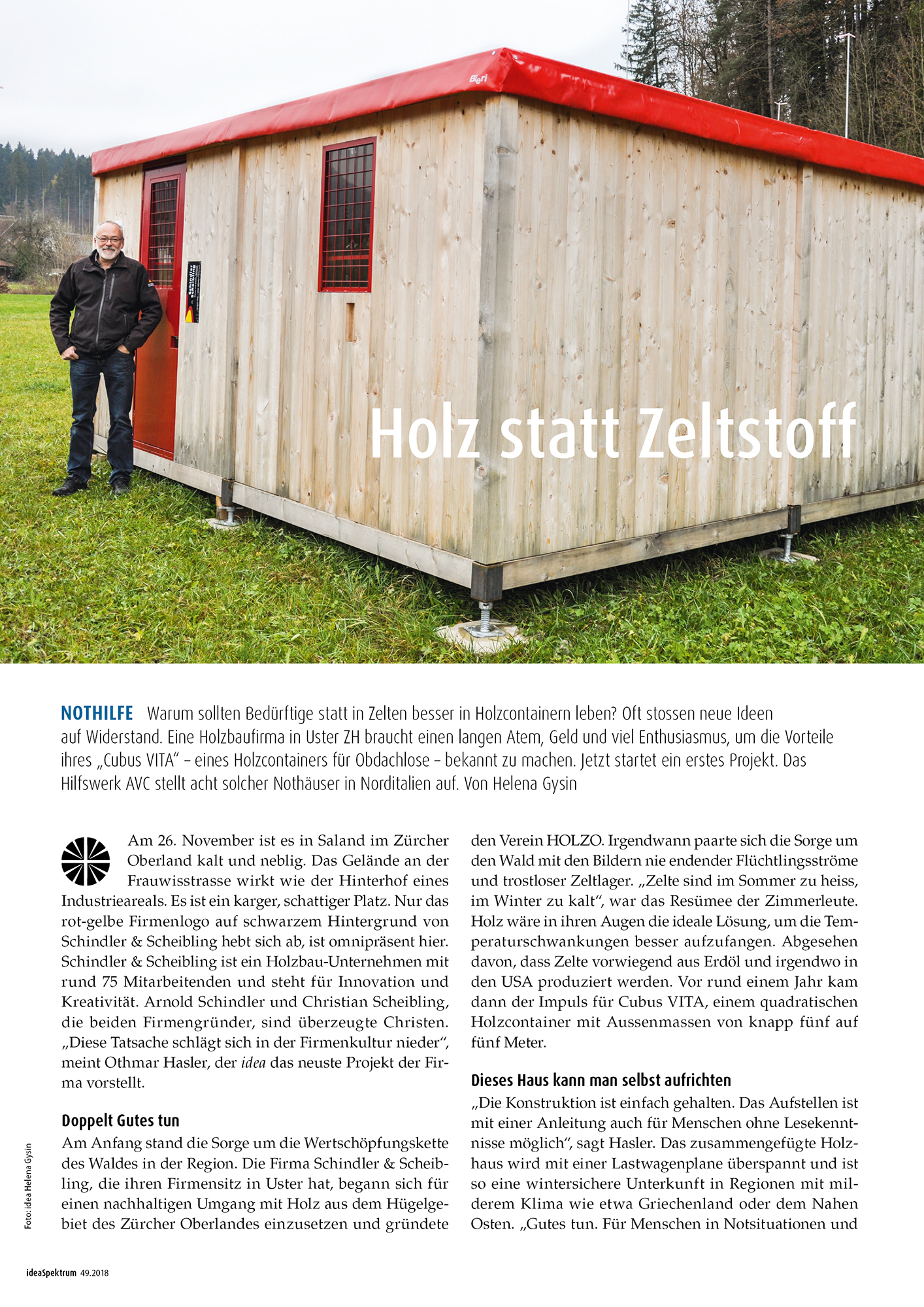 Erneut wird Cubus VITA in einem Bericht erwähnt. Im Interview mit Othmar Hasler, Projektleiter des Vereins «HOLZO», schrieb idea Spektrum einen umfassenden Bericht über das Projekt Cubus VITA. Es freut uns sehr, dass unser Erfolg in Turin der erste Schritt in die richtige Richtung darstellt. Im Interview mit Hasler wurde das Projekt erklärt. Auch alle Gründe, welche für den Einsatz der Holzhäuser sprechen, legte er deutlich dar. Anhand von klaren Argumenten werden die Vorteile der Cubus VITA erkennbar.
