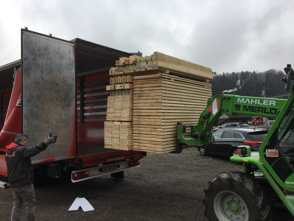 Zusammen mit dem Hilfswerk AVC Schweiz machen sich die ersten Cubus VITA auf den Weg nach Turin. Am Montag den 26. November 2018 wurden die ersten 8 Unterkünfte in einzelne Teile verladen und bereitgestellt für die Überfahrt nach Turin.