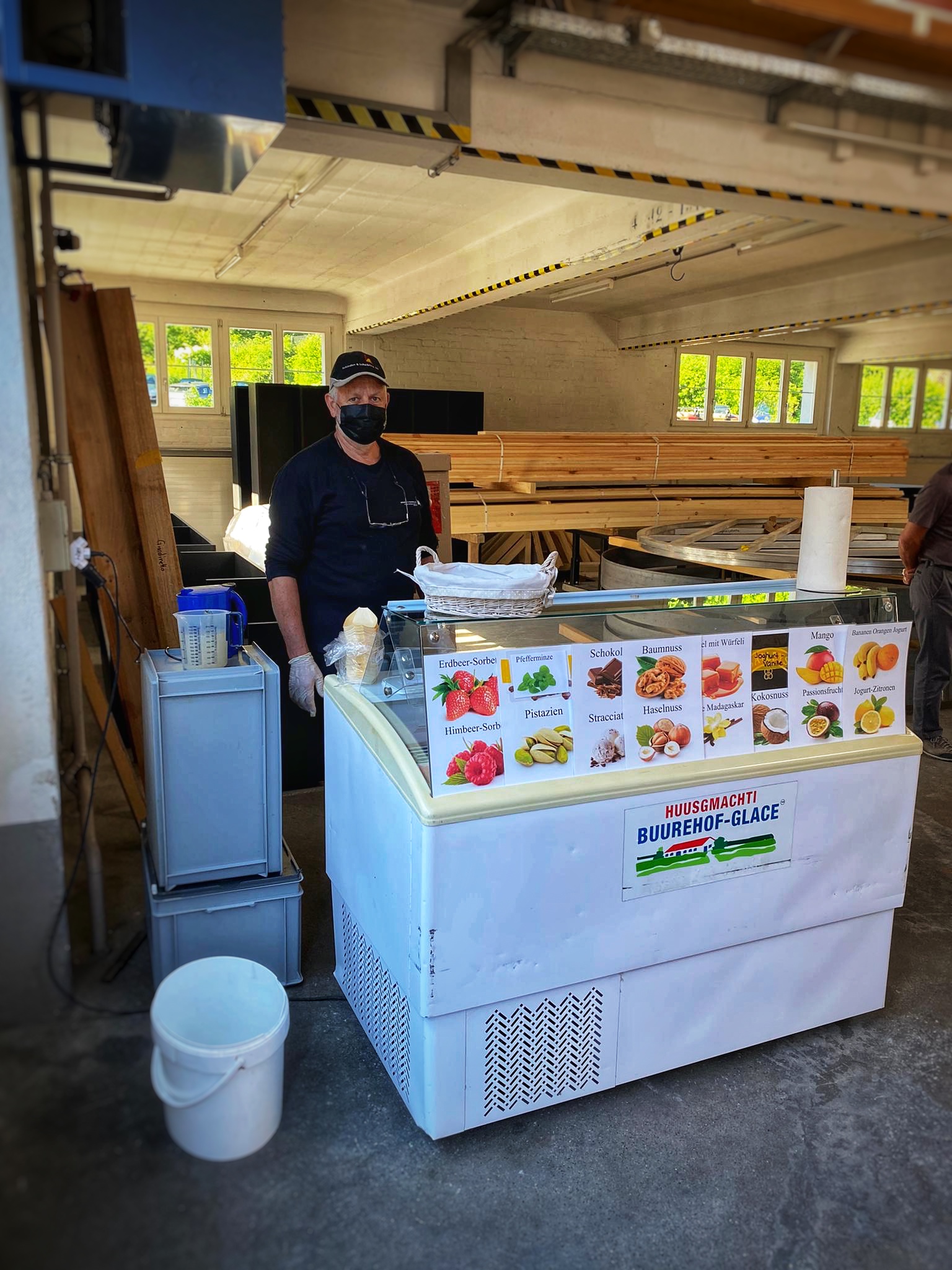 Doch Hansruedi hat sich etwas ganz Spezielles ausgedacht… «Dieses herrlich heisse Sommerwetter ruft ja buchstäblich nach Glacé», muss er sich gesagt haben, und spendiert eine ganze Truhe mit 16 verschiedenen Glacé-Sorten – 40 Kilo sollen es zu Beginn gewesen sein!!! 🍨🤩 Seit vier Tagen spazieren immer mal wieder gut gelaunte Mitarbeiter mit einem Schäleli mit Glacé-Kugeln durch die Firma. Danke für diese süssen Momente! 👏🏻