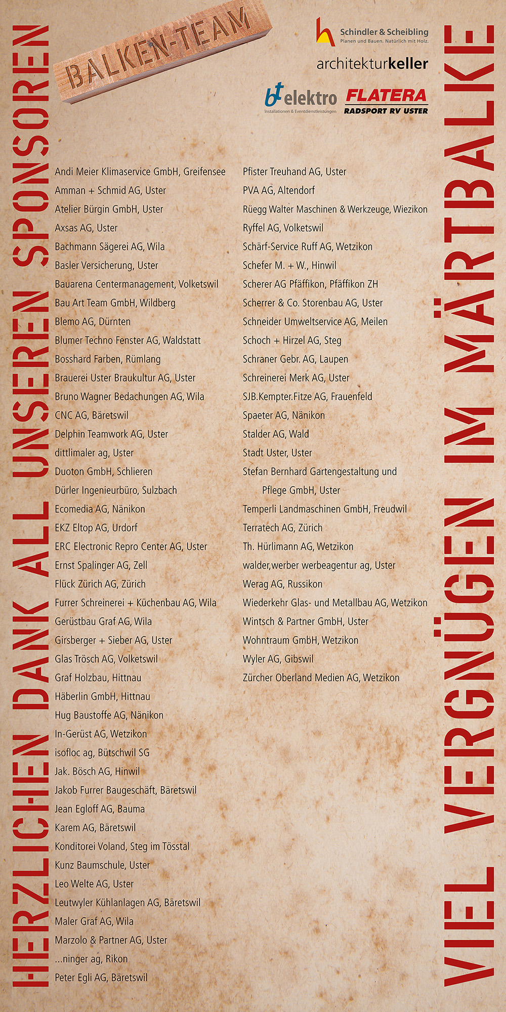 Und natürlich ein grosses Dankeschön an die Sponsoren, die den Balken jedes Jahr erst möglich machen: