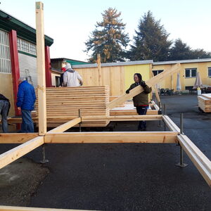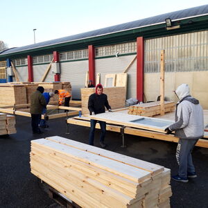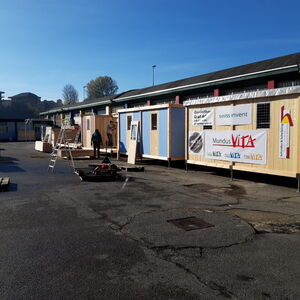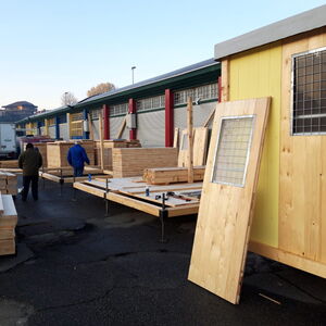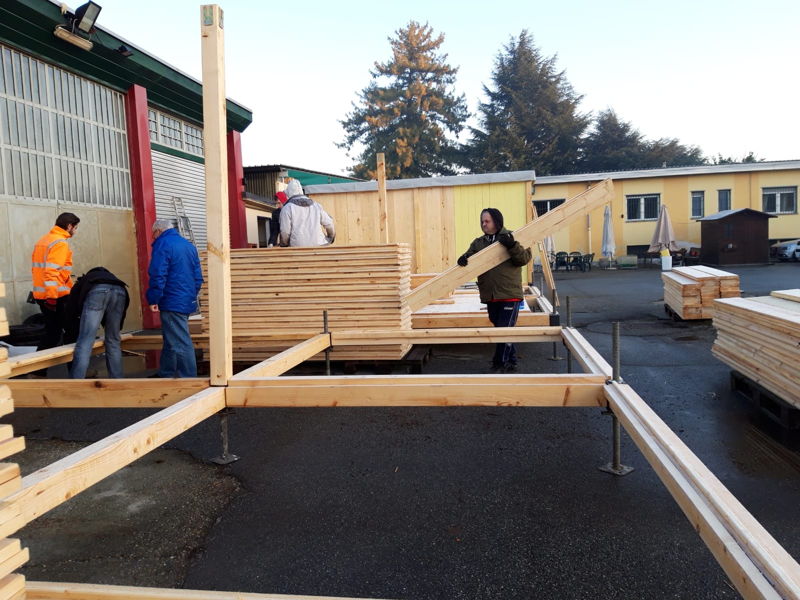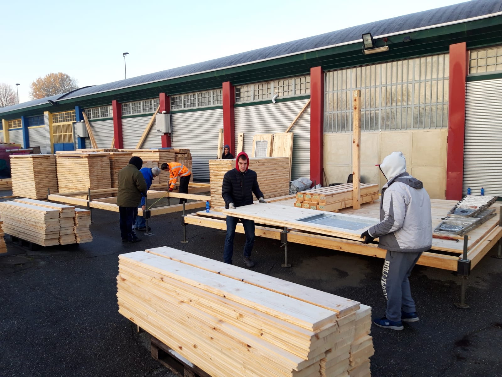 Nach bereits zwei Tagen stehen alle Unterkünfte fast fertig in Form eines Dorfs. Dies sind nun die ersten fertigen Cubus VITA, die Menschen in Not in Turin helfen sollen. Bald können die Unterkünfte bezogen werden.