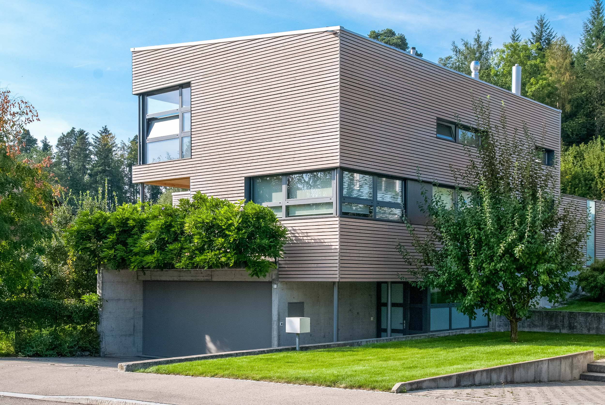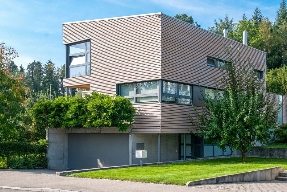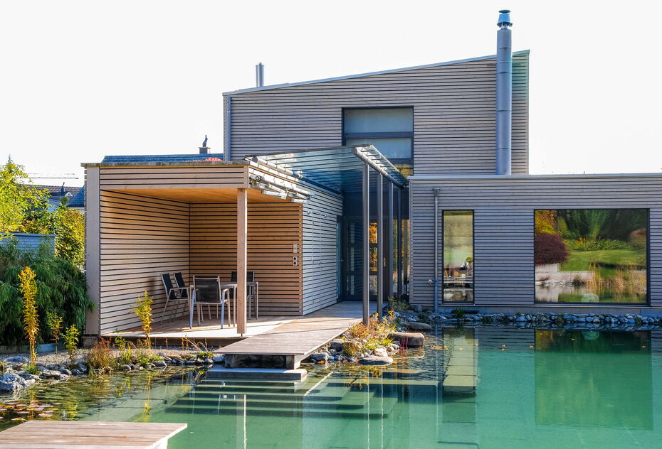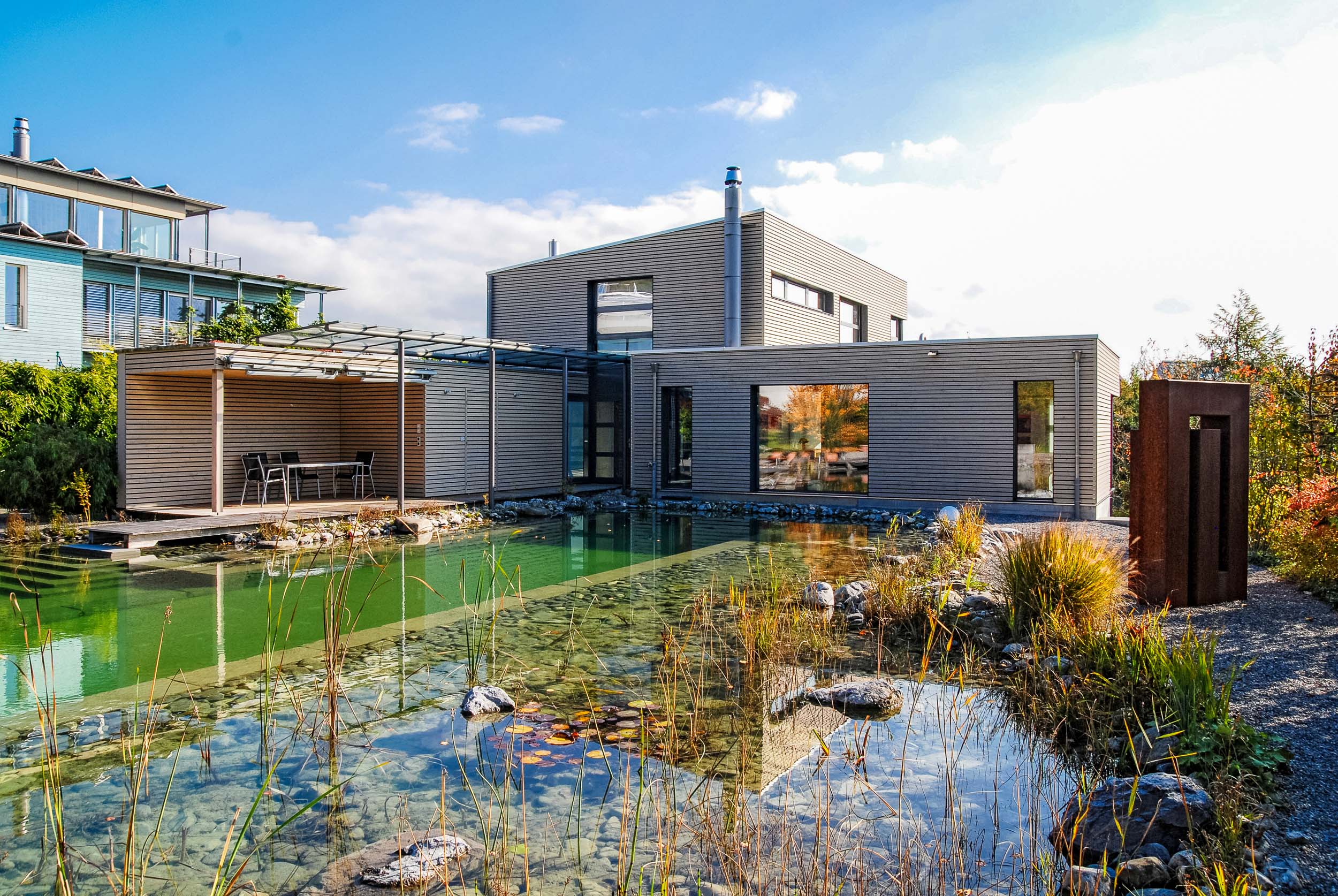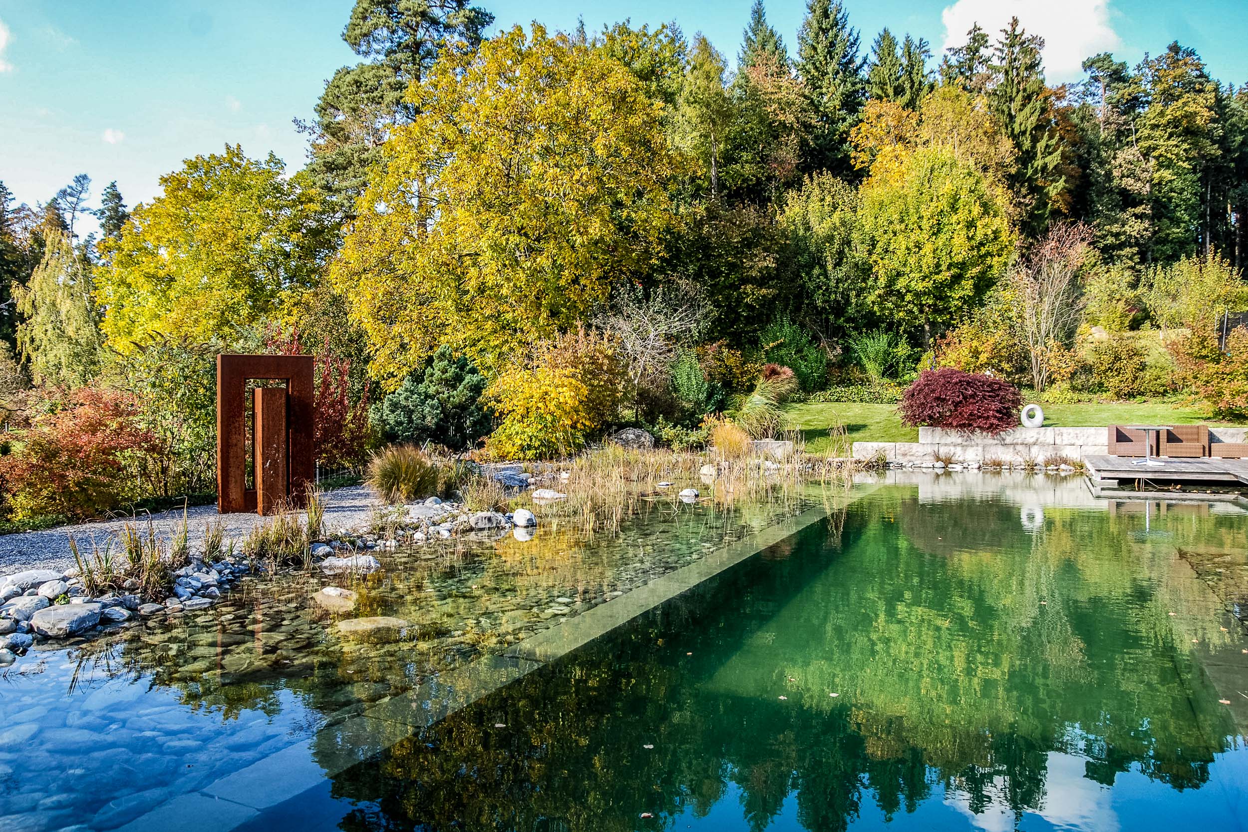 Umgebungsgestaltung Einfamilienhaus in Wermatswil mit Pergola und Teich