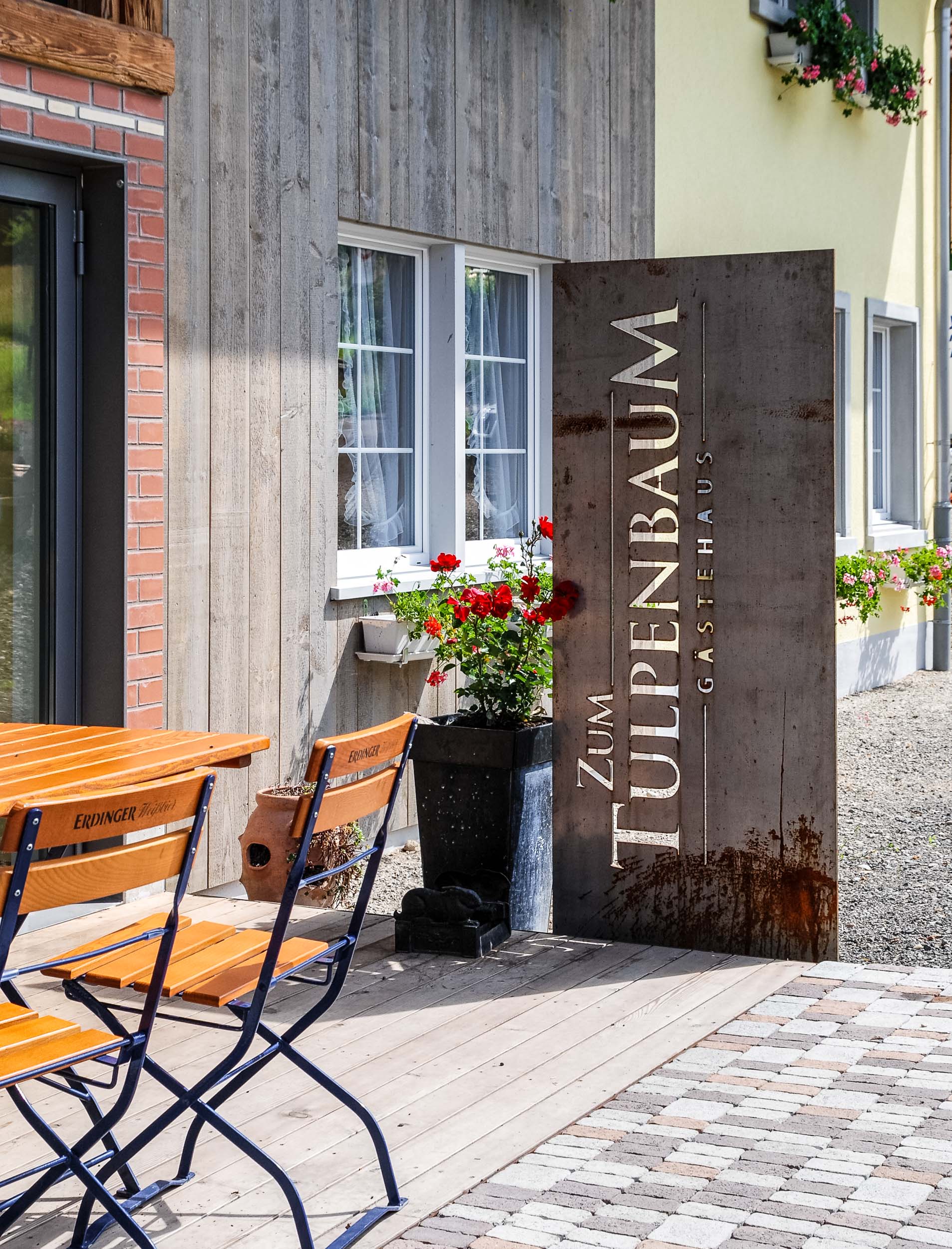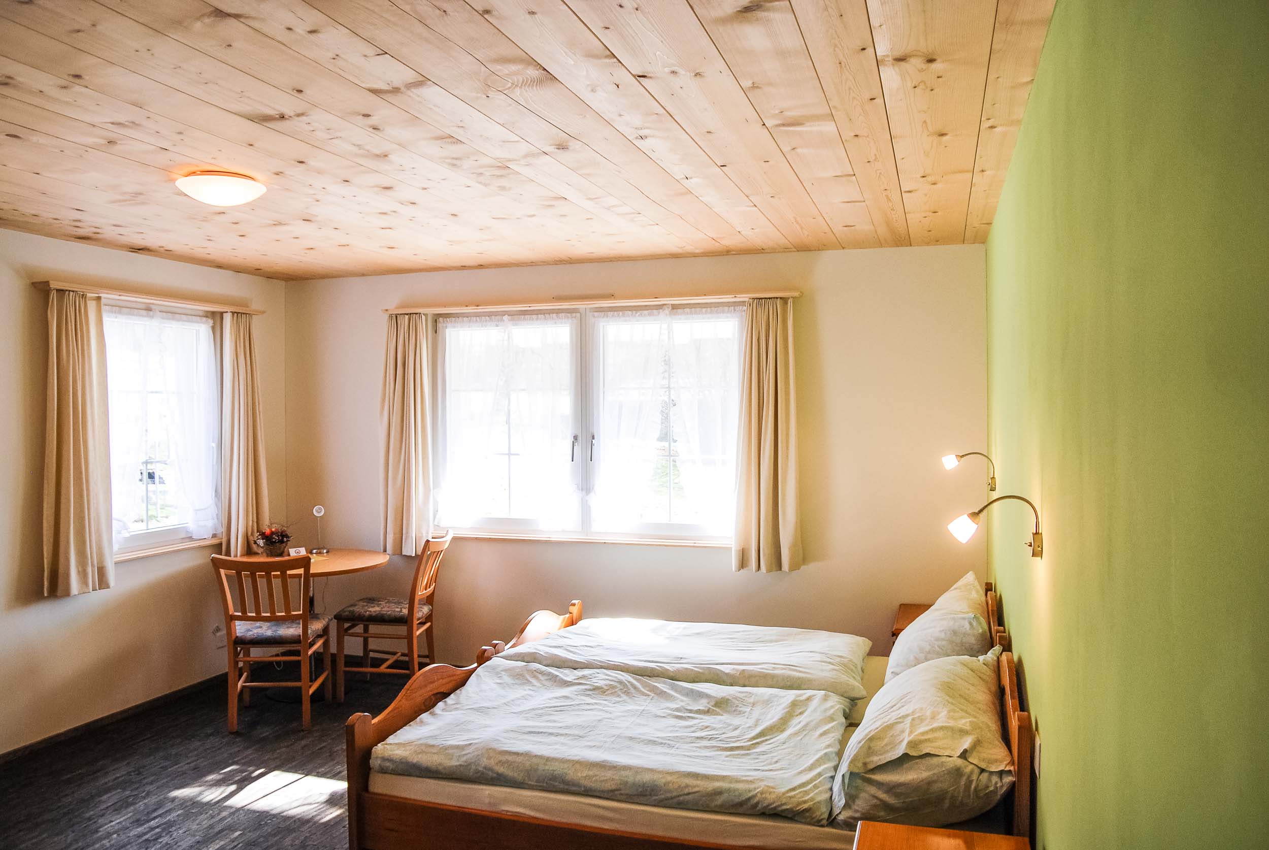 Das fünfteilige Vielzweckbauernhaus steht unter kommunalem Denkmalschutz und sollte bei einer Veränderung dementsprechend gewürdigt werden. Die Aufgabe bestand darin, im Scheunenteil Hotelzimmer und Gemeinschaftsräume einzubauen, die bei Bedarf auch zu Wohnungen umfunktioniert werden könnten.